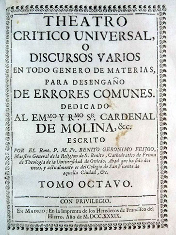 Feijoo: "Teatro Crítco Univers.", 1726-40